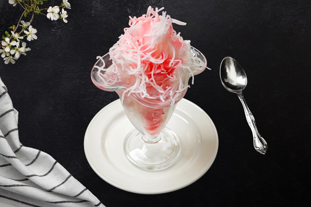 Traditional Iranian cold dessert consisting of thin noodles, sugar, rose water. Served with lime juice. One of the earliest forms of frozen desserts, existing as early as 400 BC!