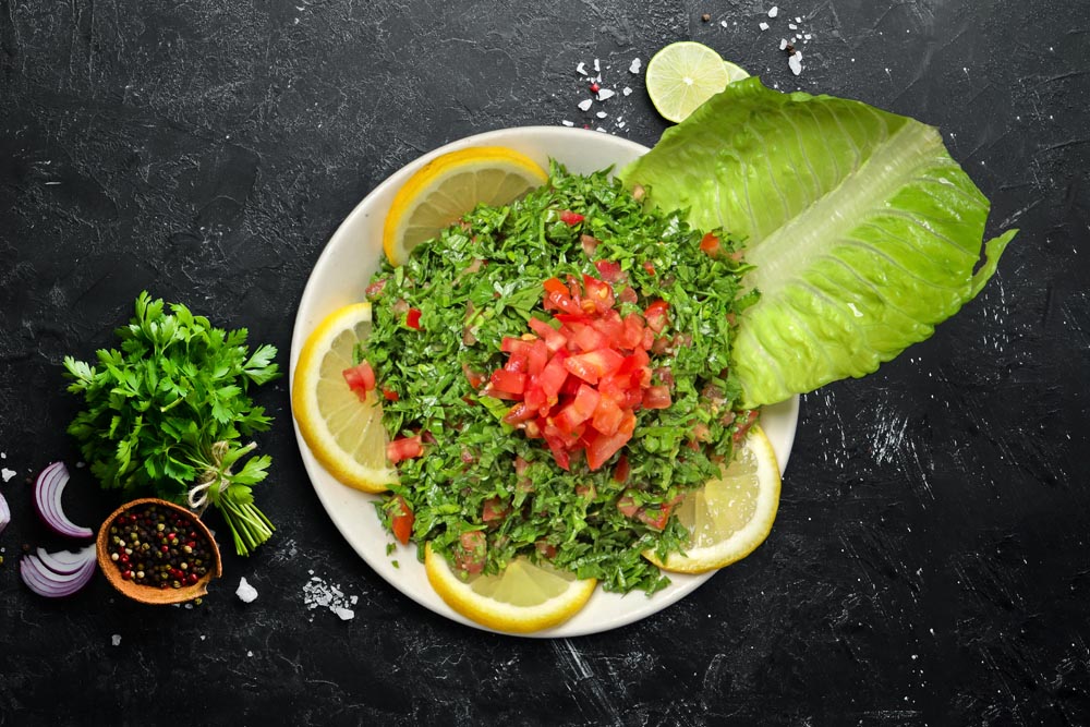 A delicate mixture of parsley, mint, tomato, green onion, lemon and olive oil. Enjoy the flavorsome freshness of this Levantine dish.